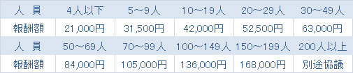人員数に応じた月額顧問料につきましては、下表をご参照下さい。