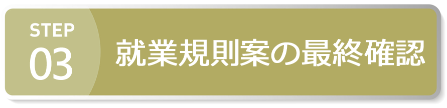 就業規則案について経営者の意見に基づいた就業規則の最終確認をしていただきます。